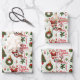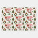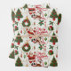 Dieses bezaubernde Weihnachtspapier zeichnet sich durch ein sich wiederholendes Muster klassischer Urlaubsmotive auf einem hellen Hintergrund aus. Das Design umfasst fröhliche Weihnachtsklauseln mit ausgestreckten Armen, verzierte Weihnachtsbäume in Töpfen, festliche grüne Kränze, verstreute Geschenke, heilige Zierpflanzen und verwinkelte Ziergegenstände. Die Wörter "Frohe Weihnachten" werden in einem Script-Schriftart geschrieben, das sich durch das Muster zieht und die traditionelle und fröhliche Urlaubssästhetik ergänzt.