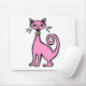Eine rosa Pussy-Katze im Retrostil, mit einem goldenen, rautengepolsterten Kragen. Ein Original gezeichnet von Nicolette Amanda Berry.