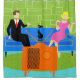 Ce rétro ajouter au rideau en douche de chat comporte un couple de bande dessinée essayant de devenir confortable tout en regardant la télévision une moitié du siècle moderne, sofa bleu. Le chat, cependant, a d'autres idées. D'un côté du sofa, il y a un homme bel dans un costume noir avec la cravate rouge. De l'autre côté du divan élégant, il y a une belle, blonde femme dans un montage de forme, rose indien s'habillent. Les choses iraient grandes si elle n'étaient pas pour le chat noir lisse, qui a étendu la réclamation au coussin central de sofa. Ce style des années 1960, conception minimaliste d'art est placé dans un salon élégant. Le contexte du sofa est un vert, mur en pierre. Sur le plancher d'aqua, il y a une couverture de tapis à longs poils ronde et verte, qui assortit le mur en pierre. Au premier rang de la conception, nous voyons le dos d'un téléviseur orange avec des oreilles de lapin, qui semble jouer le programme préféré de la TV du chat.