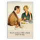 Un rétros mari et épouse s'asseyent à parler de table de petit déjeuner. Elle sourit à lui, tient un index dans le ciel, et dit, "gardez-le et vous serez une odeur étrange dans le grenier." L'intérieur de la carte est vide pour votre propre message.