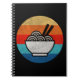 Ramilienbild im Retrostil mit Nudeln und Stäbchen auf einem farbigen Hintergrund im Retrostil in Gelb, Orange, Rot, Türkis und Blau