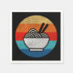 Ramilienbild im Retrostil mit Nudeln und Stäbchen auf einem farbigen Hintergrund im Retrostil in Gelb, Orange, Rot, Türkis und Blau