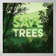 Rettet die Bäume. Durch Blätter in einem Wald gesehen. Inspiration zum Schutz der Umwelt und zur Verbreitung von Bewusstsein, Motivierend Poster, das eine Liebe unserer Wälder fördert. Schattierungen von beruhigendem Grün. .