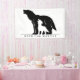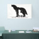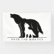 Das ist ein Schwarz-Weiß-Design eines heulenden Wolfs mit ihrem Wolfsjungen. Viele Wolfsarten (darunter der graue Wolf) sind noch immer vom Aussterben bedroht. Im Text steht "Rett die Wölfe". Dieses Design kann personalisiert werden, indem Sie eigene Texte oder Bilder hinzufügen.