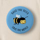 Die liebliche kleine Biene lächelt glücklich. Der Text lautet: Rett die Bienen, rett die Welt.