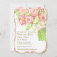 Save the Date passt die Ankündigung der Verlobung zu einem eleganten, romantischen, modernen Blumenstrauß mit Satin-Band, Bogen und Perlen, die von Audrey Jeanne Roberts in Aquarellfarben gemalt wurden. Weich pastellfarbene Rosenknospen und Blütenblätter, mit Touchs von Korallen und Buttergelb in einem zeitgenössischen, schlichten, aber romantischen Bouquet-Stil mit Stielen, die in Elfenbeinsatin und exquisiten Perlen eingewickelt sind. Touchs von digitalem "Glitzer" in Gold und Rosa, Set von der Klammer geformt Rand. Set des Themas Ihres Brautparty, Polterabends, oder anderen Hochzeitsfeiern oder Geschäftstreffen mit dieser leicht zu personalisierenden Vorlage. Es steht ein komplettes Set für Hochzeitsfeiern zur Verfügung. Auf der Rückseite ist ein blasses Erröten mit einem Punktmuster aus Perlen.