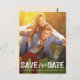 Postkartenankündigung Ihres Hochzeitdatums. Verwenden Sie Ihr volles vertikales Bild mit "Rett unser Datum" über Ihrem Foto. Ein schwarzer Farbverlauf wird am unteren Ende der Karte angezeigt, um den Typ herauszuheben. Wenn Sie den Verlauf nicht benötigen, entfernen Sie ihn einfach (oder klicken Sie auf das Auge, um ihn abzuschalten). Passen Sie Ihre Namen und das Datum auf Vorder- und Rückseite an. Es ist eine weitere Karte mit einem weißen Farbverlauf mit dunklem Typ verfügbar.