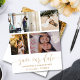 Niedlich rettete unsere Terminankündigung. Diese Vorlage bietet Platz für 4 Ihrer Lieblings-Paare Fotos in Weiß mit cooler handgeschriebener Kalligraphie in Gold. Einfach mit Ihren eigenen, einzigartigen Details bearbeiten.