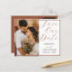 Elegante Ankündigung Datum freihalten ist perfekt, um Ihre Hochzeitspläne in Gang zu bringen. Es verfügt über eine Fotovorlage und große "Save the Date" Typografie in Terrakotta auf einem weißen Hintergrund. Passen Sie Ihre persönlichen Daten an.
