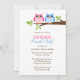 Un joli genre révèle une invitation avec des hiboux roses et bleus assis sur une branche d'arbre. Personnalisez facilement votre fête.