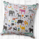 Viel Spaß für Tierfreunde und Wildtiere auf der ganzen Welt. Safaritiere, Dschungel, Bauernhof, Vögel, Haustiere und wild lebende Tiere. Ein Monster scheint auch hineingeflossen zu sein. Lavendel auf der einen Seite und Meeresschaum grün auf der anderen. Originelle Kunst von Nic Squirrell.
