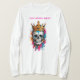 Este diseño impactante combina la fuerza de un cráneo realista con el poder de una corona dorada, rodeada de explosiones de color en tonos vibrantes como azul, fucsia, naranja y amarillo. La calavera transmite rebeldía, energía y estilo underground, mientras que la corona añade un aire de poder y realeza urbana.