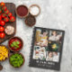 Stilvolles Rezept-Notizbuch, das Sie mit fünf eigenen Fotos personalisieren können, vielleicht mit Ihren Kindern oder sich selbst kochen, oder mit Ihren Lieblings-Geschirr - oder beidem - in einer minimalistischen Foto-Collage gegen eine Chalkboard-Textur. Personalisieren Sie weiter mit Ihrem Namen oder Familiennamen in weißen Kalligraphiebuchstaben. Die Rückseite weist ein Muster von unordentlichen weißen Strichen auf, die auf einem Chalkboard-Hintergrund dargestellt sind.