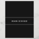 Benutzerdefinierte doppelseitige Rezepturteilseite für einen Schwarz-Weiß-Kochbuch-Rezeptbinder. Das einfache, moderne minimalistische Design in einer klassischen Schwarz-Weiß-Farbpalette mit anpassbarem Text auf einem koordinierenden Banner. Banner zeigt den mit dem Text "MAIN GESCHIRR" angezeigten benutzerdefinierten Text in einfachem Schriftart an. Sie können den Text anpassen, indem Sie die angegebenen Felder verwenden, oder mit der Schaltfläche "Nachricht" Kontakt mit dem Designer aufnehmen, um Hilfe zu erhalten. So erstellen Sie Ihre eigene Kochbuch-Rezept-Divider: 1. Wählen Sie diese Vorlage aus. 2. Ersetzen Sie den Text. 3. Überprüfen Sie Ihr Design auf Größe und Platzierung. Ein einfacher Rezeptbinder Kapiteltrenner, um Ihr Kochbuch-Rezeptbuchpaket zu vervollständigen, um Ihre Rezepte oder Essenspläne zu organisieren, oder ein durchdachtes, modernes Küchengeschenk für den Zuhause-Koch, Koch oder Organisator in Ihrem Leben.