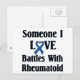 rheumatoide Arthritis RA Design. Unterstützung und Sensibilisierung für die rheumatoide Arthritis, eine schmerzhafte, schwächende Auto-Immunerkrankung. Enthält das RA-blaue Farbband für Bewusstsein und die Wörter "Jemand, der in der Liebe mit Rheumatoid kämpft"