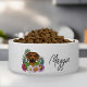 Desteis originelle Cartoon-Illustration einer niedlichen Rhodesier Ridgeback züchtet Hunde den Kopf nah-up, umgeben von bunten Wildblumen im Sommer. Es gibt eine rot-rosa Blume, eine lila Blume, eine dunkelrosa Blume und eine weiße, dunkle Blume mit grünen Blätter und Ästen. Es gibt auch einen personalisierbaren Textbereich für einen Namen oder anderen benutzerdefinierten Text wie "Wasser" oder "Lebensmittel".