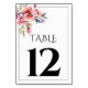 This sophisticated wedding table number card showcases a beautiful combination of sage green greenery and peach-pink flowers. In the upper left corner, a graceful rhododendron branch embellished with peach-pik blossoms and sage green leaves creates a captivating focal point. Around it there is a thin black border. The text on the card is presented in a bold and eye-catching typography, further enhancing the overall elegance of this design.
