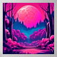 Entdecken Sie eine skurrile Welt mit unserem gigantischen rosa Mond-Set gegen einen dunklen, wunderschönen Wald in einem faszinierenden Cartoon-Stil (Dieses Design aus KI). Bestellen Sie noch heute und Embrace the Joy of Shopping!