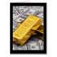 Concept d'argent montrant deux barres d'or et beaucoup de cent billets d'un dollar dessous.