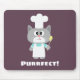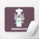 Niedlicher Koch mit dem Wort "Perfect!" über einer Aubergine lila Hintergrundfarbe.