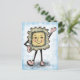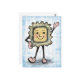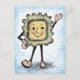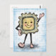 Ricky Ravioli est un personnage de raviolis de style vintage, jaune et rose avec un arrière - plan en pointillé bleu.