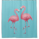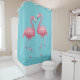 Le rideau de douche est montré dans une couleur solide d'aqua profond avec une jolie empreinte tropicale flamingo. Recherchez l'assortiment tapis de bain Personnaliser cet article ou acheter tel quel.