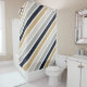 rideau de douche rayé gris, noir et tan Couleurs neutres apaisantes de la salle de bain grise, noir et bronzée design. Par celeste@khoncepts.com