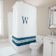Rideau de douche monogrammé. Si vous cherchez un rideau de douche moderne et monogrammé qui respire le raffinement et la classe, alors vous aimerez notre rideau de douche bleu et blanc élégant. Doté d'une motif à rayures classique et élégante au fond, ce rideau accrocheur vous séduira dans n'importe quelle salle de bain.