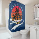 Rideau de douche San Diego avec un design rétro qui présente un coucher de soleil et des palmiers sur fond bleu de la vieille gloire personnalisable. Ce design comporte également la Californie dans une police manuscrite avec un glyphe de queue à paraphe pour un look rétro stylé. Ce rideau de douche est juste pour vous si vous êtes de San Diego ou vous pouvez l'obtenir en cadeau ou souvenir pour quelqu'un.