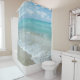 Imaginez une fuite privée d'île chaque matin avec ce rideau en douche pittoresque de vue d'océan de plage, sable blanc, eau bleue d'espace libre et ciel bleu ensoleillé font la scène parfaite de vacances de voyage avec des vagues se brisant sur le rivage.