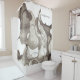 Un design graphique imaginatif pour la douche intitulée '1979 Black & Whyte'. Méandering-ish et monochromatique ... avec un message d'encouragement motivant : 'Laver, Rincer, Répéter ... et Saisir la journée! '