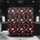 Joli rideau de douche à fleurs de roses rouges et blanches sur fond noir.