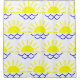 Ce rideau de douche a un design Boho de demi-cercles avec des lignes pour faire un soleil et des coquilles Saint-Jacques pour faire de l'eau.