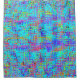 Les tons bleu, violet, rose, orange, vert citron, noir, rouge et plus sont tissés à travers cet abstrait. Bien qu'il y ait beaucoup de couleur et de mouvement, le motif en forme de grille donne à cette pièce l'aspect d'une courtepointe moderne.
