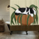 Un chat en tuxedo noir et blanc qui dort sur un plante de maison verdoyant. Vous pouvez avoir un chat ou un plante mais pas les deux
