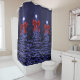 Rideaux De Douche Christmas Sparkling Trees Navy Blue Faux Red Bow