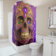 Ce rideau de douche a un crâne et design de bijoux sur elle.