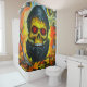 Ce rideau de douche est revêtu d'un crâne d'art.