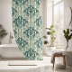rideau de douche vert, motif damassé, décoration de salle de bain, accessoires maison vert, rideau de douche fleurie, vert et blanc, design moderne, rideau de douche en tissu, salle de bain de luxe, salle de bain design