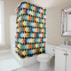 Ce rideau de douche a un design géométrique de diamants de couleur claire se chevauchant sur un champ de noir.