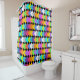 Ce rideau de douche a un design géométrique de diamants néons se chevauchant sur un champ de noir.