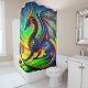 Ce rideau de douche d'imaginaire a un magnifique dragon représenté dessus.
