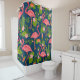 Rideaux De Douche Flamingo rose sur un dos rayé turquoise