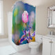 Fleur rose - Beauté En Rose. Fleur rose simple contre l'arrière - plan flou des couleurs jaune, vert et bleu. Belle scène fleurie. rideau de douche pour décorer votre salle de bain pour le plaisir et la bonne humeur.