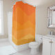 Ce rideau de douche a un design géométrique de quatre nuances d'orange courant horizontalement.