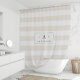 Chic rideau de douche rayé en ivoire crème et blanc dispose d'un élément central portant votre monogramme initial unique et nom de famille en noir noir épais.