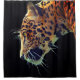 Ce rideau de douche a un jaguar cool représenté dessus.