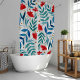 Jardin magique - rouge et turquoise. Aquarelle botanique illustration rideau de douche