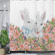 Rideaux De Douche Lapin Blanc Whimsical, Fleurs Roses Pastel