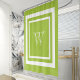 Rideaux De Douche Monogramme blanc encadré vert chaux